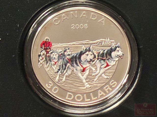 Lot # 309 - Pièce colorée de $30 2006 en Argent ‘Traîneau à chiens’ (très belle)