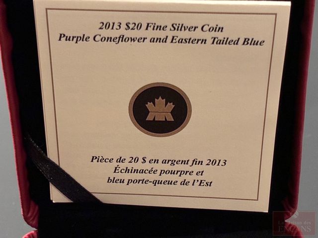 Lot # 168 - Pièce de $20 2013 ‘Échinacée pourpre et bleu porte-queue de l’est’ en Argent pur PAS DE TAXE