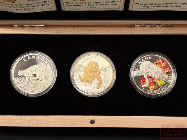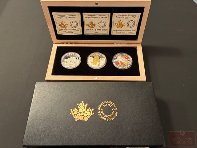 Lot # 221 - Ensemble de 3 Pièces de $20 2014 qui contient plus d’une once d’Argent pur chacune ‘Le Cougar’ PAS DE TAXE