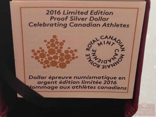 Lot # 281 - Dollar Épreuve 2016 en Argent pur ‘Hommage aux athlètes Canadiens’ PAS DE TAXE