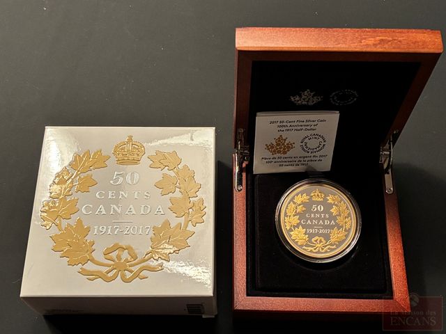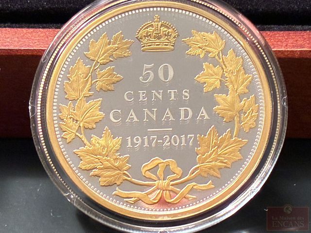 Lot # 301 - Pièce de 50 Cents 2017 2 onces d’Argent pur avec placage Or ‘100ième anniversaire de la pièce de 50¢ de 1917’PAS DE TAXE