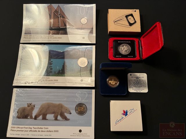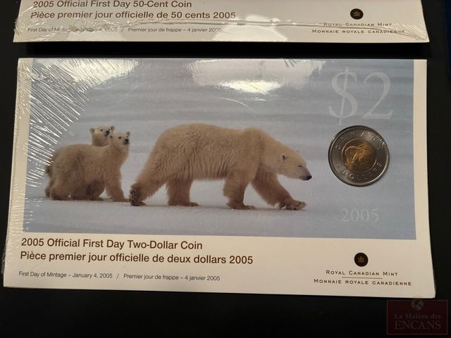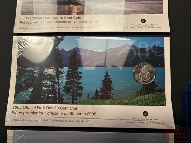 Lot # 313 - Ensemble de Pièces 10¢ - 50¢ - $2 2005 toutes scellées (une pièce de $1 1970 et une pièce de $1 1992)