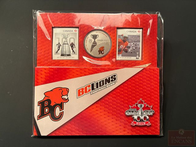 Lot # 256 - Ensemble Timbres et Pièce de 25 Cents 2012 ‘BC Lions Footballl Club’ – scellé