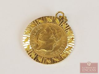 #229Pendentif en or 18k avec pièce de 20 francs 1812 en or 22k mesurant 1.25 pouces