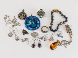 | #62 | Lot de bijoux en argent comprenant bagues et pendentifs - tailles 6.75, 7.5 Lot de bijoux en argent comprenant bagues et pendentifs - tailles 6.75, 7.5 | SOLD – CAD$ 40.00 | |