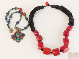 | #229 | Collier de corail mesurant 21 pouces de longueur ainsi qu'un collier berbère avec malachite, lapis lazuli et corail mesurant 18 pouces de longueur Collier de corail mesurant 21 pouces de longueur ainsi qu'un collier berbère avec malachite, lapis lazuli et corail mesurant 18 pouces de longueur | VENDU – CAD$ 40.00 | |