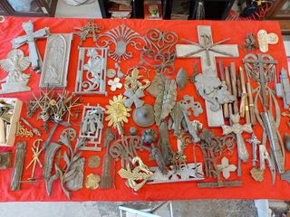 | #54 | Un lot de pièces en métal varié provenant d'une fonderie dont divers morceaux religieux et ornementaux Un lot de pièces en métal varié provenant d'une fonderie dont divers morceaux religieux et ornementaux | SOLD – CAD$ 80.00 | |