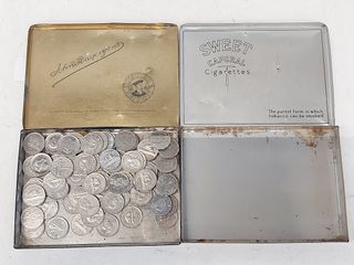 ![]() | #170 | Lot de pièces de 5 sous canadiens anciens avec deux boites à cigarettes en métal mesurant 6 pouces de largeur Lot de pièces de 5 sous canadiens anciens avec deux boites à cigarettes en métal mesurant 6 pouces de largeur | SOLD – CAD$ 20.00 |