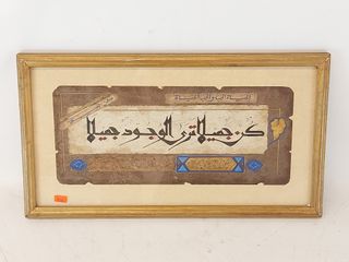 ![]() | #49 | Calligraphie islamique sur papier finement peinte à la main avec détails à la feuille d'or mesurant 5.5x13.5 pouces Calligraphie islamique sur papier finement peinte à la main avec détails à la feuille d'or mesurant 5.5x13.5 pouces | CANCELLED |