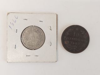 ![]() | #157 | Deux pièces italiennes dont 10 centesini 1867H et un lira 1866 Deux pièces italiennes dont 10 centesini 1867H et un lira 1866 | CANCELLED |