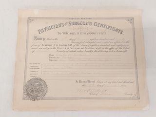 ![]() | #186 | Certificat de médecin de l'état de New-York 1890 avec sceau mesurant 9.5x12 pouces Certificat de médecin de l'état de New-York 1890 avec sceau mesurant 9.5x12 pouces | CANCELLED |