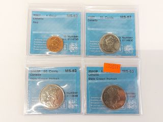 ![]() | #83 | Lot de pièces de monnaies canadiennes gradées dont 50 sous 2022 P MS63, 50 sous 2002 P MS63, 25 sous 1987 MS63 et 1 sous 1967 MS63 Lot de pièces de monnaies canadiennes gradées dont 50 sous 2022 P MS63, 50 sous 2002 P MS63, 25 sous 1987 MS63 et 1 sous 1967 MS63 | SOLD – CAD$ 15.00 |
