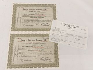 ![]() | #155 | Lot de bons d'actions de la Eastern Asbestos Company Lot de bons d'actions de la Eastern Asbestos Company | SOLD – CAD$ 15.00 |