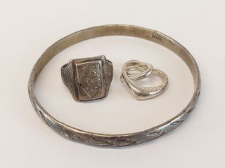 ![]() | #189 | Trois bagues en argent serties de pierres de taille 6.75- 5.5 et 6 Trois bagues en argent serties de pierres de taille 6.75- 5.5 et 6 | SOLD – CAD$ 30.00 |