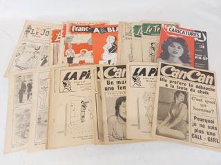 ![]() | #24 | Lot de magazines caricaturaux datant des années 1950 dont A la blague, Le trou, Franc rire, Le joker, Can Can et autres Lot de magazines caricaturaux datant des années 1950 dont A la blague, Le trou, Franc rire, Le joker, Can Can et autres | SOLD – CAD$ 25.00 |