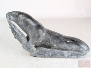 | #67 | Sculpture inuite sur pierre à savon, signée et mesurant 9.5 pouces de longueur, avec son étiquette Sculpture inuite sur pierre à savon, signée et mesurant 9.5 pouces de longueur, avec son étiquette | SOLD – CAD$ 35.00 | |
