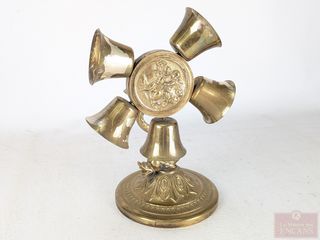 | #143 | Carillon rotatif français en laiton avec motifs de dauphins, mesurant 9 pouces de hauteur Carillon rotatif français en laiton avec motifs de dauphins, mesurant 9 pouces de hauteur | SOLD – CAD$ 50.00 | |