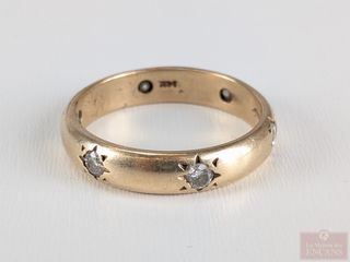 | #209 | Alliance en or 14k sertie de six diamants, pour un total approximatif de plus d'un carat, signée, taille 11 | SOLD – CAD$ 400.00 | |