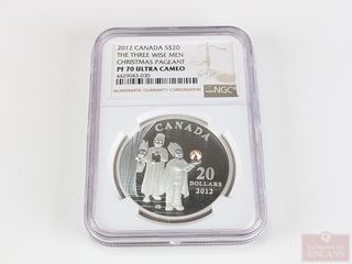 | #191 | Pièce canadienne de vingt dollars en argent pur 9999 une once, gradée NGC PF70, sans taxes Pièce canadienne de vingt dollars en argent pur 9999 une once, gradée NGC PF70, sans taxes | SOLD – CAD$ 85.00 | |