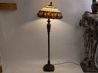 | #182 | Lampe en métal et pierre avec abat-jour en vitrail, mesurant 59 pouces de hauteur Lampe en métal et pierre avec abat-jour en vitrail, mesurant 59 pouces de hauteur | SOLD – CAD$ 75.00 | |