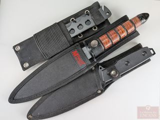 | #197 | Lot de trois couteaux comprenant Mtech, United Navy Seals Special Operation et Master USA, le plus grand mesurant 13 pouces de longueur au total Lot de trois couteaux comprenant Mtech, United Navy Seals Special Operation et Master USA, le plus grand mesurant 13 pouces de longueur au total | SOLD – CAD$ 60.00 | |