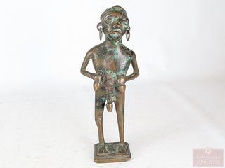 | #232 | Rare bronze anciendu Bénin coulé à la cire perdue, mesurant 8.25 pouces de hauteur représentant un sorcier tenant deux sacs de magie (pièce de qualité muséale) Rare bronze anciendu Bénin coulé à la cire perdue, mesurant 8.25 pouces de hauteur représentant un sorcier tenant deux sacs de magie (pièce de qualité muséale) | SOLD – CAD$ 85.00 | |