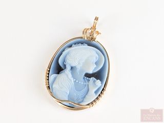 | #233 | Agate bleue montée sur pendentif en or 10k, mesurant 2.25 pouces Agate bleue montée sur pendentif en or 10k, mesurant 2.25 pouces | SOLD – CAD$ 250.00 | |