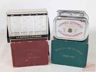 | #144 | Quatre tirelires de la Banque d'épargne de la Cité et du District de Montréal datant des années 1960, dont deux avec leurs boites d'origine Quatre tirelires de la Banque d'épargne de la Cité et du District de Montréal datant des années 1960, dont deux avec leurs boites d'origine | SOLD – CAD$ 60.00 | |