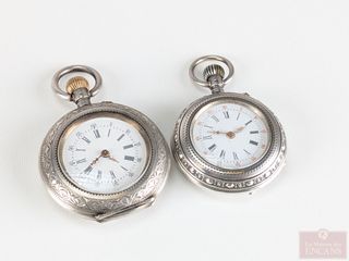 | #196 | Deux montres de poche avec boitiers en argent 800, fabrication suisse, datant de la fin du 19eme siècle, la plus grande mesurant 2.25 pouces Deux montres de poche avec boitiers en argent 800, fabrication suisse, datant de la fin du 19eme siècle, la plus grande mesurant 2.25 pouces | SOLD – CAD$ 85.00 | |