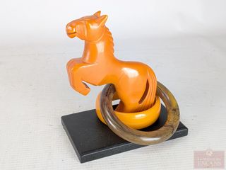 | #56 | Ancien ornement architectural indien, sculpté sur bois, représentant un cheval de guerre et mesurant 9 pouces de hauteur Ancien ornement architectural indien, sculpté sur bois, représentant un cheval de guerre et mesurant 9 pouces de hauteur | SOLD – CAD$ 75.00 | |