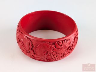 | #186 | Bracelet chinois sculpté sur cinnabre avec motif de dragon, mesurant 3.25 pouces de largeur Bracelet chinois sculpté sur cinnabre avec motif de dragon, mesurant 3.25 pouces de largeur | SOLD – CAD$ 35.00 | |