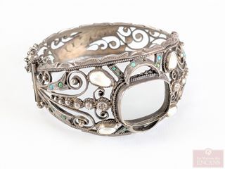 | #204 | Ancien bracelet victorien en argent serti de nacre de perle, circa 1880, mesurant 2.5 pouces de largeur Ancien bracelet victorien en argent serti de nacre de perle, circa 1880, mesurant 2.5 pouces de largeur | SOLD – CAD$ 90.00 | |