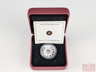 | #225 | Pièce canadienne de trois dollars en argent pur 9999 avec cristal Swarovski, encapsulée, dans sa boite avec certificat, sans taxes Pièce canadienne de trois dollars en argent pur 9999 avec cristal Swarovski, encapsulée, dans sa boite avec certificat, sans taxes | SOLD – CAD$ 40.00 | |