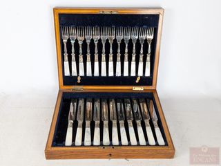 | #61 | Ensemble de service pour la viande victorien Arrison Bros. and Howson, couteliers de sa Majesté, circa 1890, le couteau mesurant 16 pouces de longueur au total Ensemble de service pour la viande victorien Arrison Bros. and Howson, couteliers de sa Majesté, circa 1890, le couteau mesurant 16 pouces de longueur au total | SOLD – CAD$ 25.00 | |