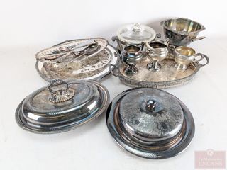 ![]() | #123 | Lot d'argenterie comprenant plats de service et ustensiles, le plus grand plat de service mesurant 14 pouces de diamètre Lot d'argenterie comprenant plats de service et ustensiles, le plus grand plat de service mesurant 14 pouces de diamètre | |