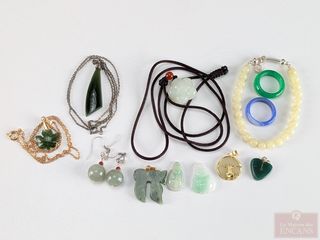 ![]() | #183 | Lot de bijoux en jade comprenant bagues, pendentifs, bracelet mesurant 6 pouces de longueur et autres pierres Lot de bijoux en jade comprenant bagues, pendentifs, bracelet mesurant 6 pouces de longueur et autres pierres | |