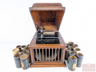 ![]() | #147 | Gramophone à cylindres Edison modèle Amberolla #30 première version, datant du début du 20eme siècle et mesurant 12.5x15x12.5 pouces, avec sa manivelle et cylindres, fonctionnel Gramophone à cylindres Edison modèle Amberolla #30 première version, datant du début du 20eme siècle et mesurant 12.5x15x12.5 pouces, avec sa manivelle et cylindres, fonctionnel | |