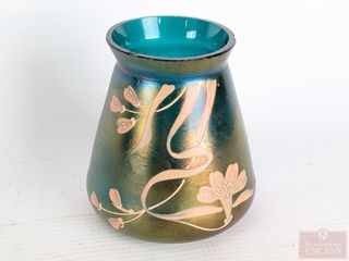 ![]() | #27 | Vase en verre iridescent art-nouveau, peint à la main, datant des années 1920 et mesurant 3.75 pouces de hauteur (petites ébréchures) Vase en verre iridescent art-nouveau, peint à la main, datant des années 1920 et mesurant 3.75 pouces de hauteur (petites ébréchures) | |