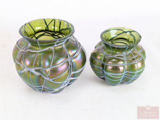 ![]() | #29 | Deux vases en verre iridescent Loetz, circa 1900, le plus grand mesurant 4.25 pouces de hauteur (petites ébréchures) Deux vases en verre iridescent Loetz, circa 1900, le plus grand mesurant 4.25 pouces de hauteur (petites ébréchures) | |