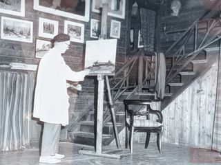 ![]() | #44 | Ancienne photographie représentant le peintre Rodolphe Duguay dans son atelier, mesurant 3.5x4.75 pouces, dans son cadre mesurant 9.5x11 pouces Ancienne photographie représentant le peintre Rodolphe Duguay dans son atelier, mesurant 3.5x4.75 pouces, dans son cadre mesurant 9.5x11 pouces | |