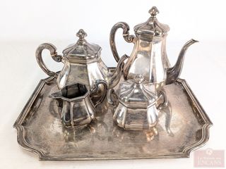 ![]() | #119 | Service à thé et café allemand Jacob Gremminger en argent 835, datant du début du 20eme siècle, comprenant crémier, sucrier, théière mesurant 9 pouces de hauteur et cabaret mesurant 17 pouces Service à thé et café allemand Jacob Gremminger en argent 835, datant du début du 20eme siècle, comprenant crémier, sucrier, théière mesurant 9 pouces de hauteur et cabaret mesurant 17 pouces | |