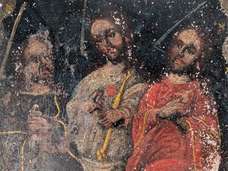 ![]() | #105 | Icône religieuse peinte à la main sur métal, datant du 19eme siècle et mesurant 9.75x6.75 pouces Icône religieuse peinte à la main sur métal, datant du 19eme siècle et mesurant 9.75x6.75 pouces | |