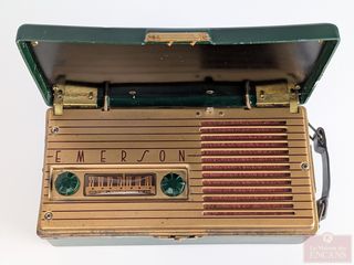 ![]() | #108 | Radio à lampe Emerson modèle 558, datant des années 1940 et mesurant 8.5 pouces Radio à lampe Emerson modèle 558, datant des années 1940 et mesurant 8.5 pouces | |