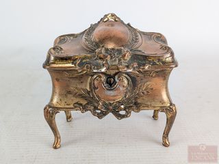 ![]() | #65 | Boite à bijoux français en cuivre doré, datant de la fin du 19eme siècle et mesurant 4 pouces Boite à bijoux français en cuivre doré, datant de la fin du 19eme siècle et mesurant 4 pouces | |