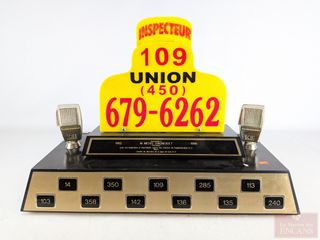 ![]() | #121 | Trophée lumineux Taxi Union offert à Michel Daigneault, président du comité de direction de la ligue de taxis A-2, datant de 1996 et mesurant 23 pouces Trophée lumineux Taxi Union offert à Michel Daigneault, président du comité de direction de la ligue de taxis A-2, datant de 1996 et mesurant 23 pouces | |