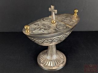 ![]() | #39 | Encensoir religieux en métal argenté et laiton, mesurant 6 pouces de hauteur Encensoir religieux en métal argenté et laiton, mesurant 6 pouces de hauteur | |