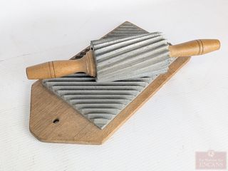 ![]() | #118 | Fer à gaufrer pour collerettes de sœurs, datant des années 1930, le plateau mesurant 10.5 pouces et le rouleau mesurant 11 pouces Fer à gaufrer pour collerettes de sœurs, datant des années 1930, le plateau mesurant 10.5 pouces et le rouleau mesurant 11 pouces | |