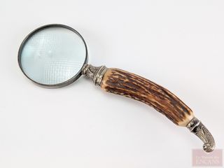 ![]() | #165 | Loupe avec manche en argent et bois de cerf, mesurant 11 pouces de longueur Loupe avec manche en argent et bois de cerf, mesurant 11 pouces de longueur | |