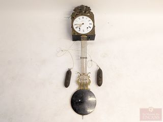 ![]() | #236 | Horloge murale Chometon avec cadran en métal émaillé, sa clef, son pendule et ses poids, datant de 1878, l'horloge mesurant 16.5 pouces de hauteur et le pendule mesurant 42.5 pouces de hauteur Horloge murale Chometon avec cadran en métal émaillé, sa clef, son pendule et ses poids, datant de 1878, l'horloge mesurant 16.5 pouces de hauteur et le pendule mesurant 42.5 pouces de hauteur | |