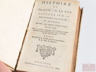![]() | #211 | Livre ancien Histoire du traité de la paix conclus sur la frontière d'Espagne et de France entre les deux couronnes en l'an 1659, datant de 1665 et mesurant 5.75x2.5 pouces Livre ancien Histoire du traité de la paix conclus sur la frontière d'Espagne et de France entre les deux couronnes en l'an 1659, datant de 1665 et mesurant 5.75x2.5 pouces | |
